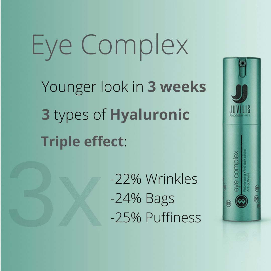 The Juvilis Eye complex will help you get that younger look in 3 weeks. It provides a triple effect focusing on